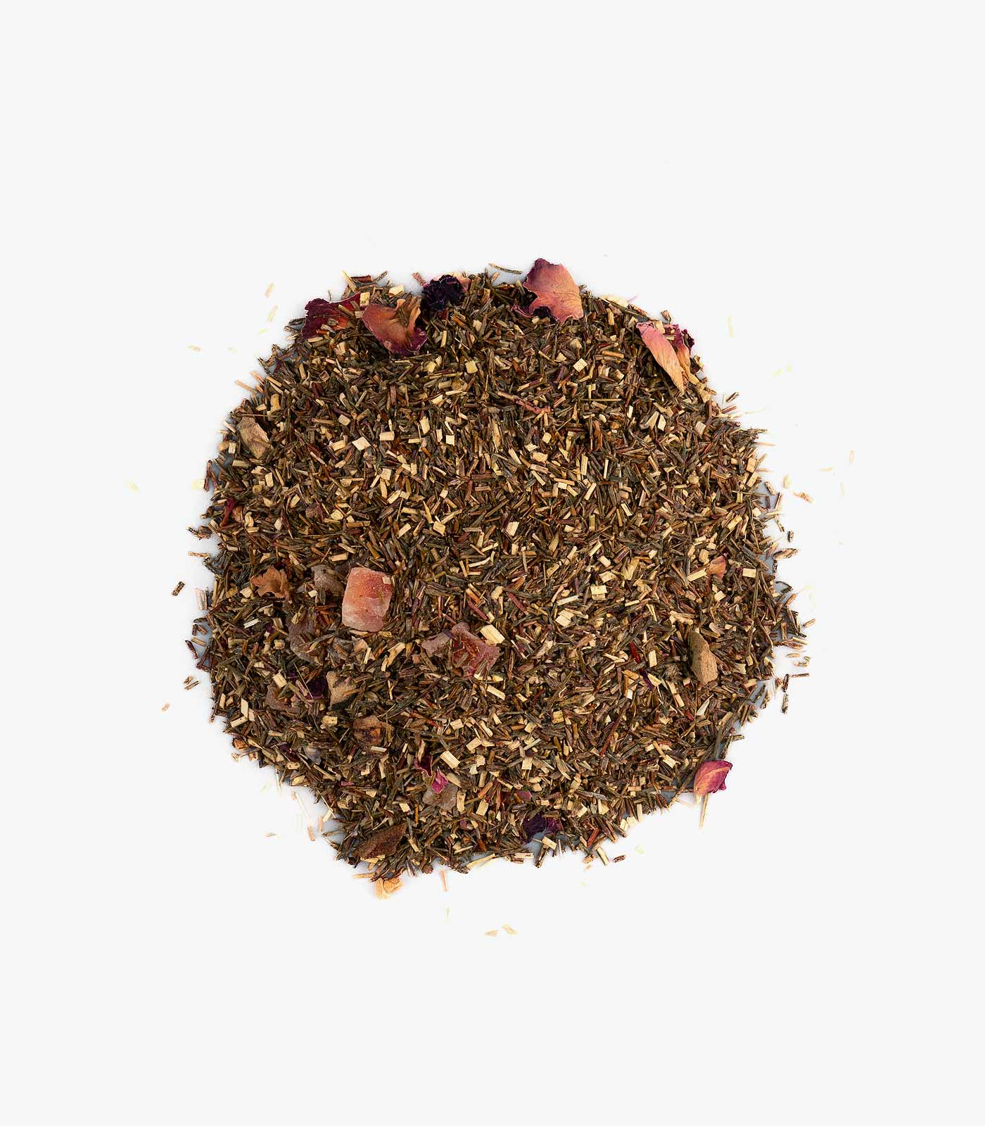 Innhold: Grønn rooibos (Sør-afrika), kandisert papaya (papaya, sukker, 7%), naturlig aroma, guava biter (4%), roseblader.